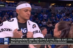 体育资讯4月18日讯 NBA附加赛,魔术121-90战胜黄蜂。本场比赛,班凯罗全场出战33分钟,17投9中,三分6投2中,罚球8罚5中,得到25分5篮板6助攻2抢断1盖帽2失误。他在场边接受了采访,以下为采访全文。