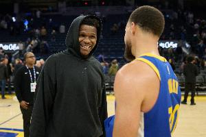 体育资讯2月15日讯 今天全明星周末继续进行相关赛事,森林狼球星爱德华兹和勇士球星库里进行了有趣互动。