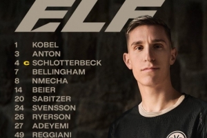1-科贝尔、3-安东、4-施洛特贝克、7-乔布·贝林厄姆、8-恩梅查、14-拜尔、20-萨比策、23-斯文森、26-莱尔森、27-阿德耶米、49-雷吉亚尼