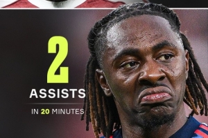 Onefootball指出,埃泽此前15场比赛没有进球或助攻,而本场比赛开场20分钟内送出2记助攻。