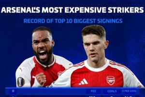 阿森纳队史前锋最贵引援排名(每球花费,仅统计担任中锋或二前锋比赛):
