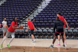队记:混音队训练中为杨瀚森设计低位传切配合的战术