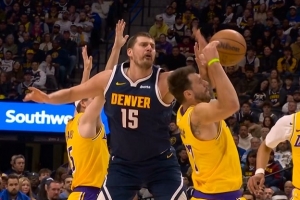 GIF-约基奇背打被东契奇抢断~!反抢打到了东契奇面部~!